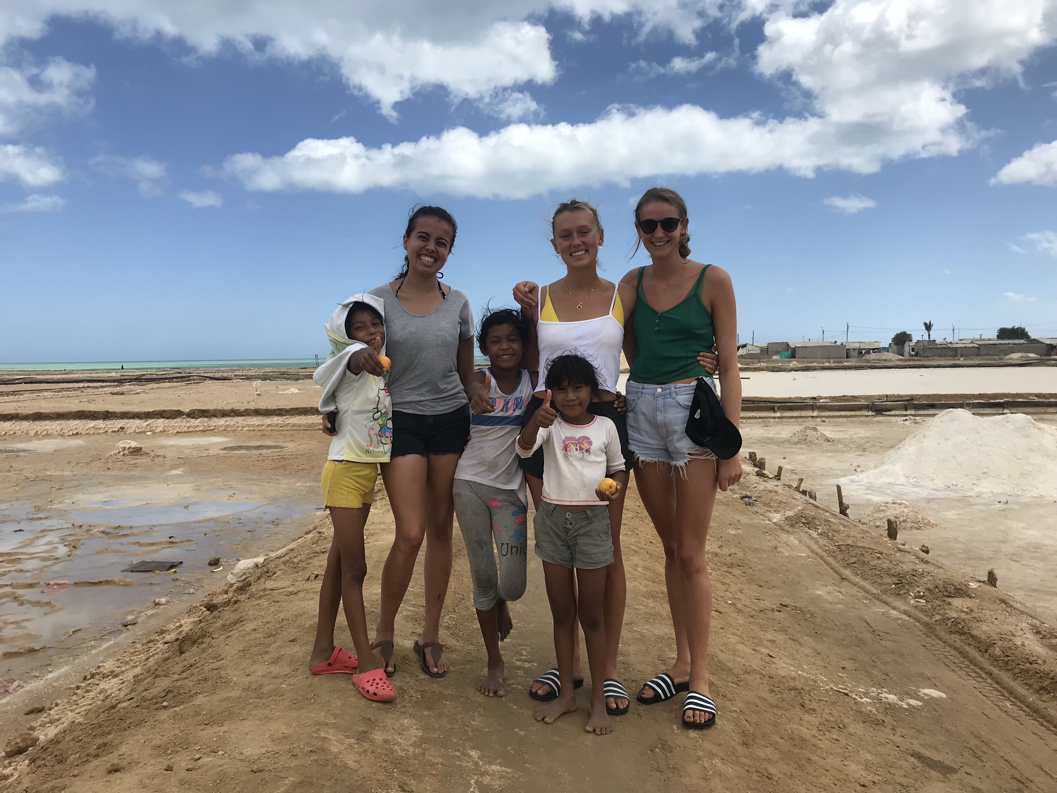 I spent three days and two nights in the desert. One night was spent in Cabo de la Vela where kitesurfing is very popular amongst tourists. The other night was spent in Punta Gallinas which is hours deeper into the desert and even more isolated from everything else. This is also the place where the northernmost point of South America is. My desert tour group consisted of our driver Bood, two British girls Lucy and Amber, and one guy from Bogota, Diego. They were a very engaging and fun group. It took around 2-3 hours to reach our first stay in Cabo de la Vela, and it was beautiful to see how the ocean water can be such a bright blue color. The contrast between the bright blue water and light brown colored sand was something I had never seen before. We slept in chinchorros both nights which are similar to hammocks. However, some differences are chinchorros are handwoven by indigenous Wayuu women using stronger material than that of hammocks. I learned the secret to sleeping comfortably in a chinchorro is to pick a one that is significantly larger than your body, and sleeping as diagonal as possible, essentially forming an X with your body and the chinchorro. My first night was very uncomfortable. From learning these two tips, my second night was a little better. After our stay in Cabo de la Vela, we then headed to Punta Gallinas. I think the drive from Cabo de la Vela to Punta Gallinas was one of my favorite parts of the whole trip. It felt like we were off-roading on a Wild Wild West adventure, trekking through fields of cactus, without any sort of clear sign guiding our way. Luckily, Bood seemed to have the whole route memorized because he knew when to make lefts, rights, drive straight, slow down, avoid holes, speed up, and everything in between. In both Cabo de la Vela and Punta Gallinas, we got to spend some time in secluded beaches that not many get to see because of the difficulty of this journey. This is where the desert meets the ocean! It was pretty impressive.