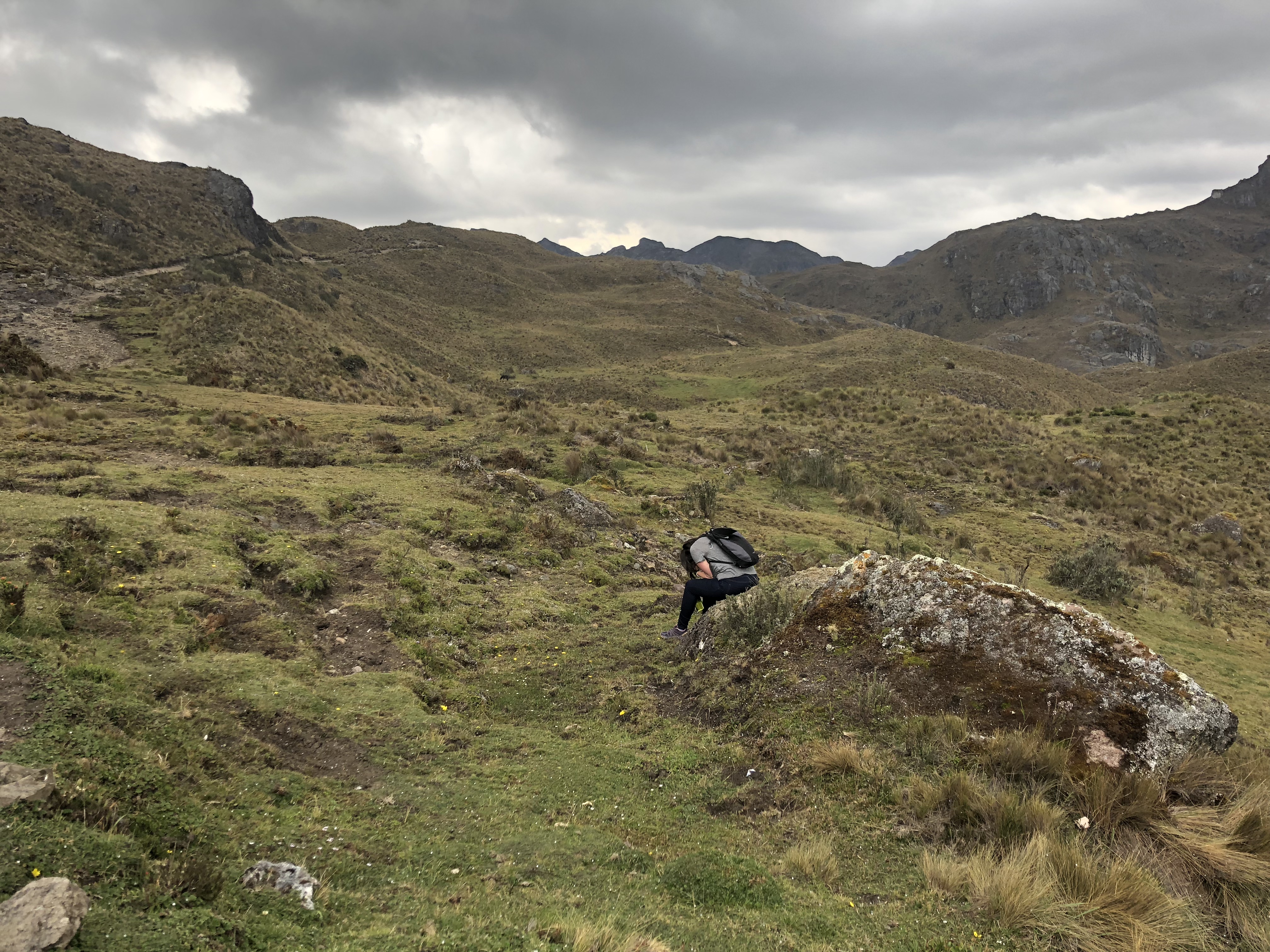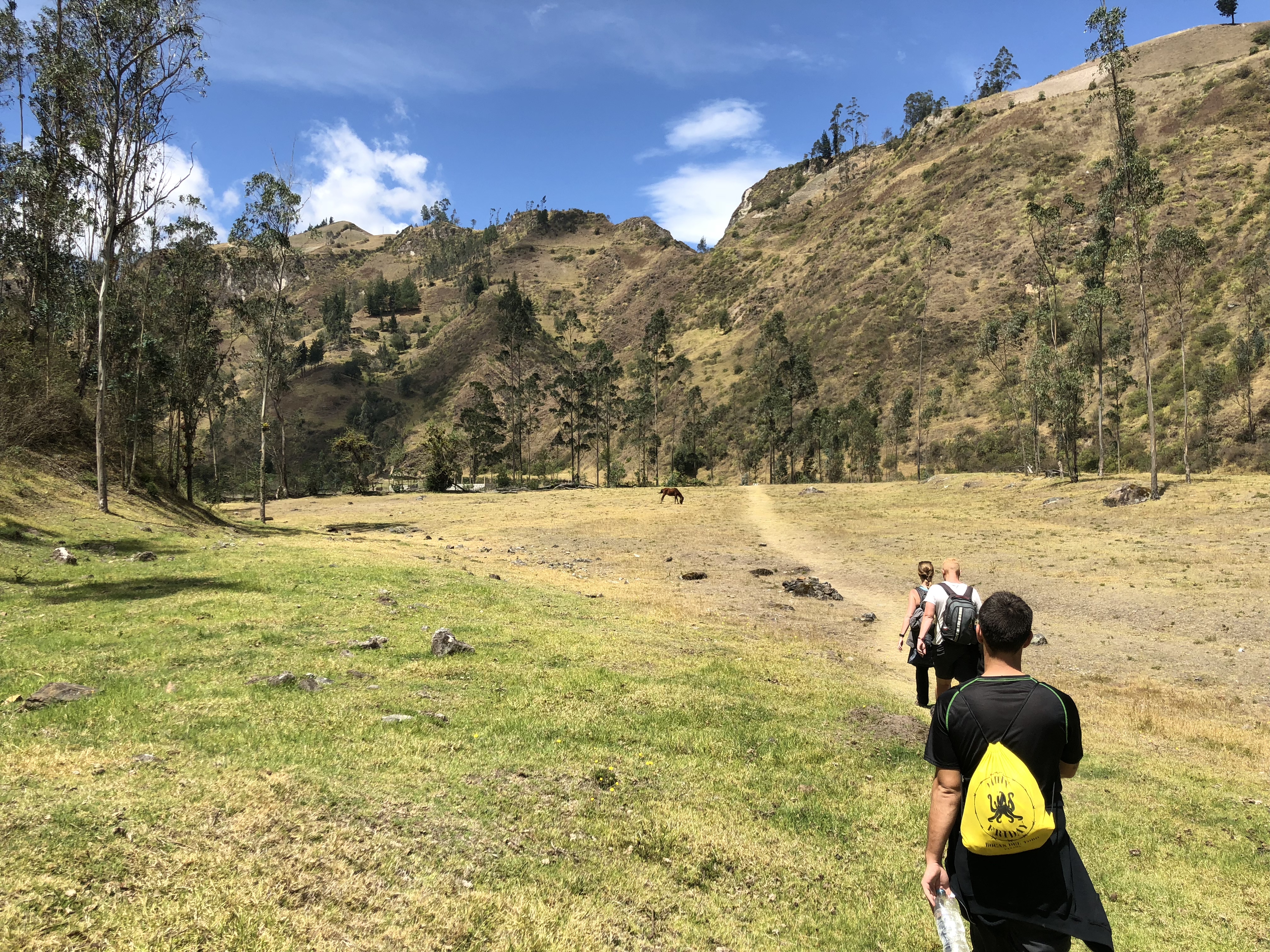 Two days after Cotopaxi, I decided to do a 3-day self-guided trek through the Ecuadorian mountains known as the Quilotoa Loop. This trek has you go through remote Andean villages, staying overnight in each village and trekking off early each morning, until you reach your final destination which is the Quilotoa Lagoon, a water-filled volcanic crater. Knowing that I would be away from my family on my birthday, I decided to plan out the multi-day trek to arrive at the lagoon on my birthday. This would be a birthday present to myself. I stayed overnight in a small village called Sigchos to set off early the next morning on my firsst day of trekking. Day one was going to lead me to the village of Isinlivi. After the first day of trekking, my confidence boosted very high because of how easy I felt it to be. I even finished about an hour earlier than the estimated arrival time, so I thought, “alright you go Anel!” However, this feeling was short lived when day two and three came around. During my first day of trekking, I had the company of a cricket for a good 15 minutes. It had landed on my watch, and I allowed it to tag along with me. Every time I am doing an activity solo and an animal happens to join me, which seems to happen a lot, my mom likes to say it is my guardian angel looking over me. Whether it is true or not, the simple fact that another living being joined me for a bit was enough to light up my experience even more. It also made it more special, since I didn’t see a single hiker for the majority of the trail. This had me questioning how many people were really doing this and if I would be alone for the remaining days of the loop. Luckily, day two and three had tons more hikers and we got to join together to trek the remaining days.