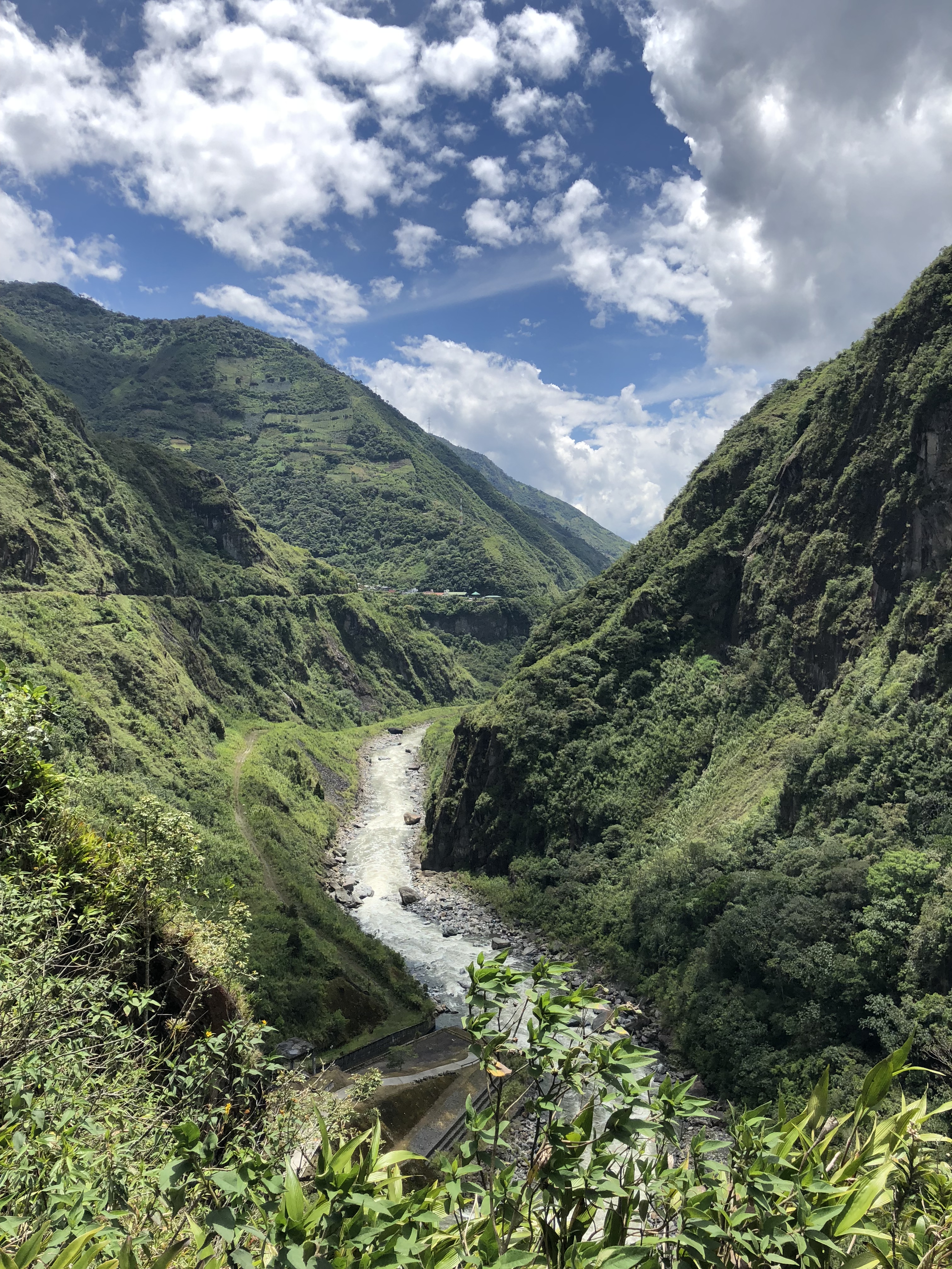 Because of my newfound love for small towns, I wanted to head to Baños since many people mentioned it to be one of the go to destinations for enjoying nature, taking hikes, and participating in extreme sports. Hiking and enjoying nature was what I wanted to do, but extreme sports are out of the picture for me. One, because I am a slight chicken and two because I can’t afford to be backpacking with crutches or a sling around my arm. I believe I am a little more susceptible to injury than the regular person. Though not many people were staying at my hostel, I got to meet two young British guys, Elliot and Jason, who I joined with to do activities for the next two days. We rented bikes and went cycling downhill through the mountains following a waterfall route that led us to multiple waterfalls. The Pailón Del Diablo was our favorite waterfall. Once we arrived, we had to walk through a path that led us so close to the fall that the mist brought up from the splashes had us soaked. There was an opening on the side of the mountain that one could bear crawl their way through to reach even closer to the waterfall and stand behind it. Cycling and reaching this waterfall was the highlight of my time in Baños. The next day we also went ahead and visited the hot springs right outside town. They were nothing special so we soaked for an hour or so and quickly left. During my last day in Baños, I went to Casa de Arbol, a small viewing area up in the mountain that has a swing many people like to go on to enjoy views of the mountains and valleys. That was pretty neat.
